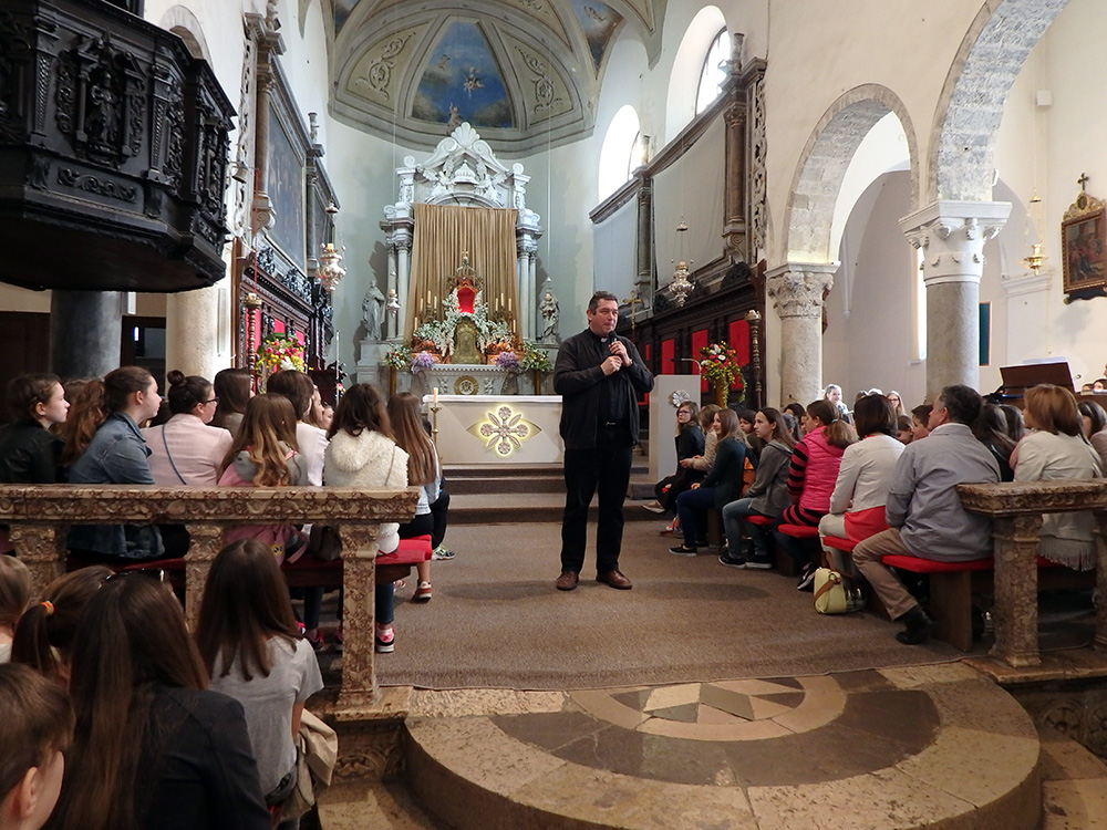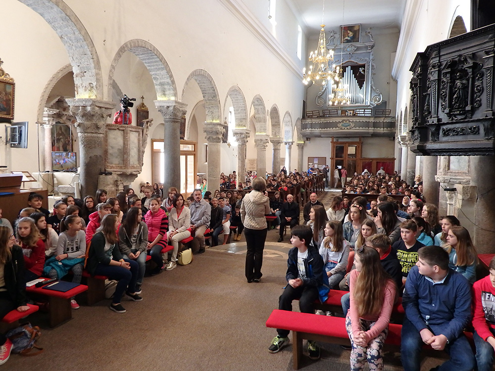 Djeca su po dolasku u krčku katedralu na grob biskupa Mahnića stavili zastavice s molitvama i imenima svojih očeva. Okupljenu djecu i vjeroučitelje pozdravio je predstojnik Katehetskog ureda vlč. Anton Peranić, a program prije mise vodila je Mirjana Žužić, vjeroučiteljica iz Krka. O očinstvu se razmišljalo kroz iskustva jednog oca obitelji, vjeroučitelja Krunoslava Čuljata i jednog duhovnog oca, vlč. Antona Valkovića. Djeca iz Novalje, kroz humoristične situacije, prikazala su kako to razgovaraju tate i djeca. Pjevanje je animirao zbor djece župe Krk „Kapljice”.
