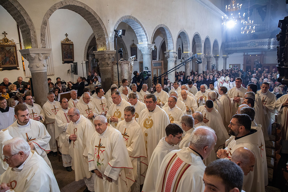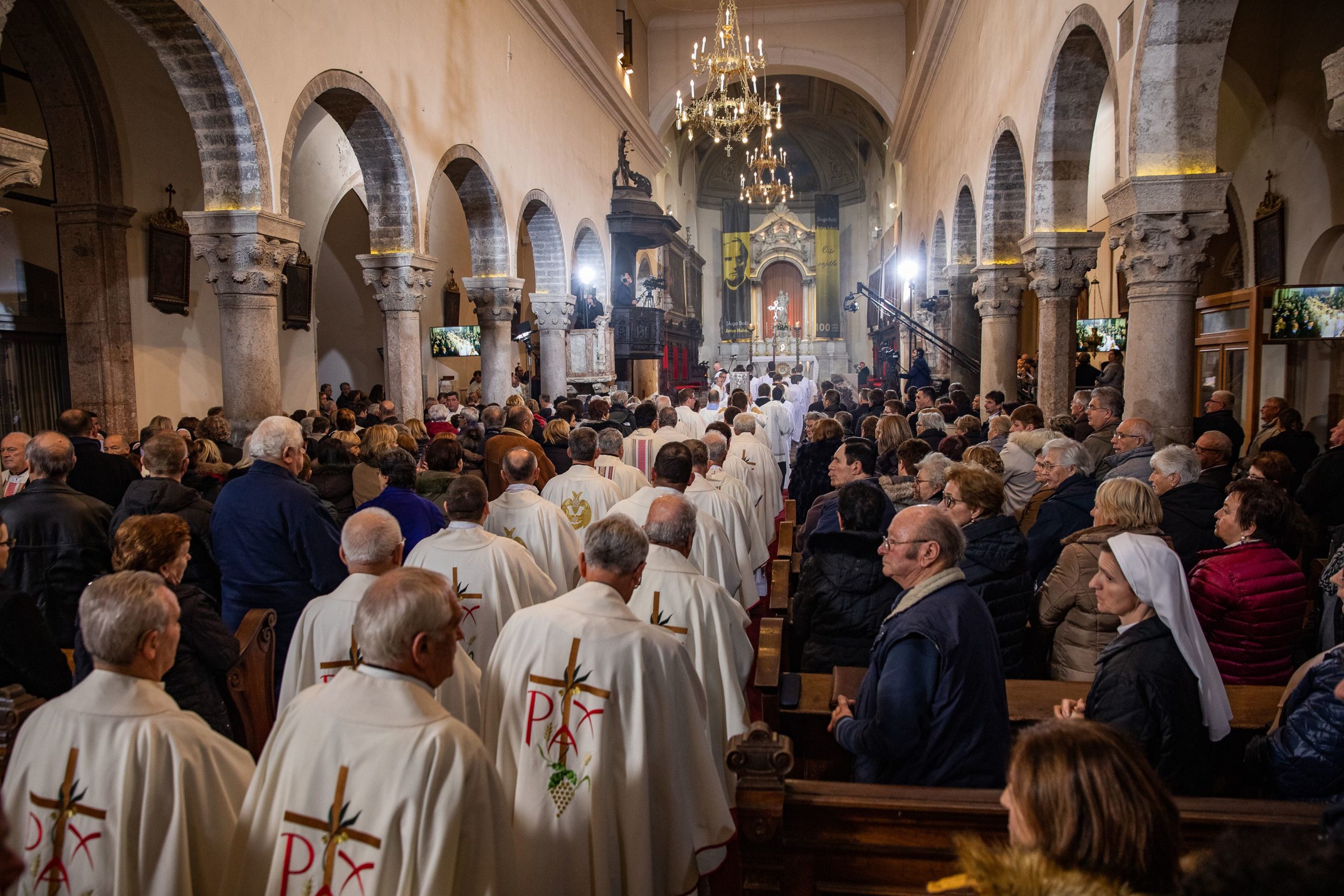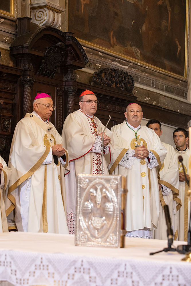 Ulaznom pjesmom Presjajna luči, za koju je tekst napisao don Ante Mateljan, a glazbu don Šime Marović, i koja je skladana upravo za ovu prigodu, započelo je svečano euharistijsko slavlje, na kojem je, uz kardinala i spomenute biskupe koncelebriralo šezdesetak svećenika i redovnika.