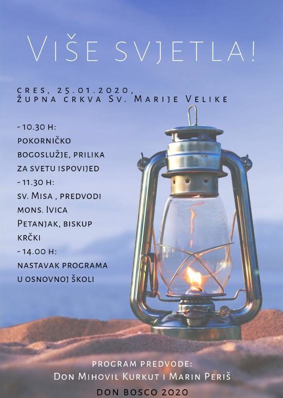 U subotu 25. siječnja u župi Cres održan je tradicionalni susret o spomendanu don Ivana Bosca. Ovaj se susret već preko pedest godina organizira u župi Cres, a ove je godine okupio više od stotinjak mladih sa kvarnerskih otoka Krčke biskupije.