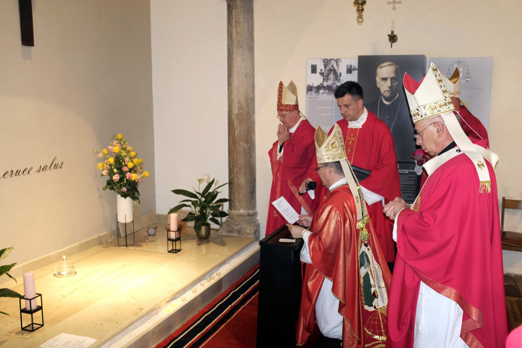 Na kraju misnoga slavlja mons. Radoš s ostalim se biskupima uputio zatim na grob Sluge Božjega te predvodio molitvu.