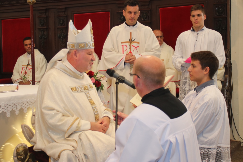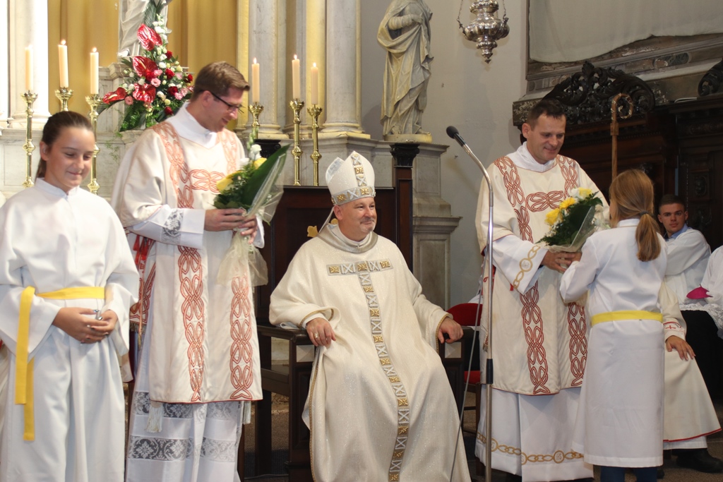 Biskup Ivica na samom je početku pozdravio đakone i sve okupljene, a posebno ministrante, njih stotinjak koji su se okupili na biskupijskom susretu ministranata. Đakone je pozvao na predanost i ustrajnost u službi koja im ovim ređenjem započinje.