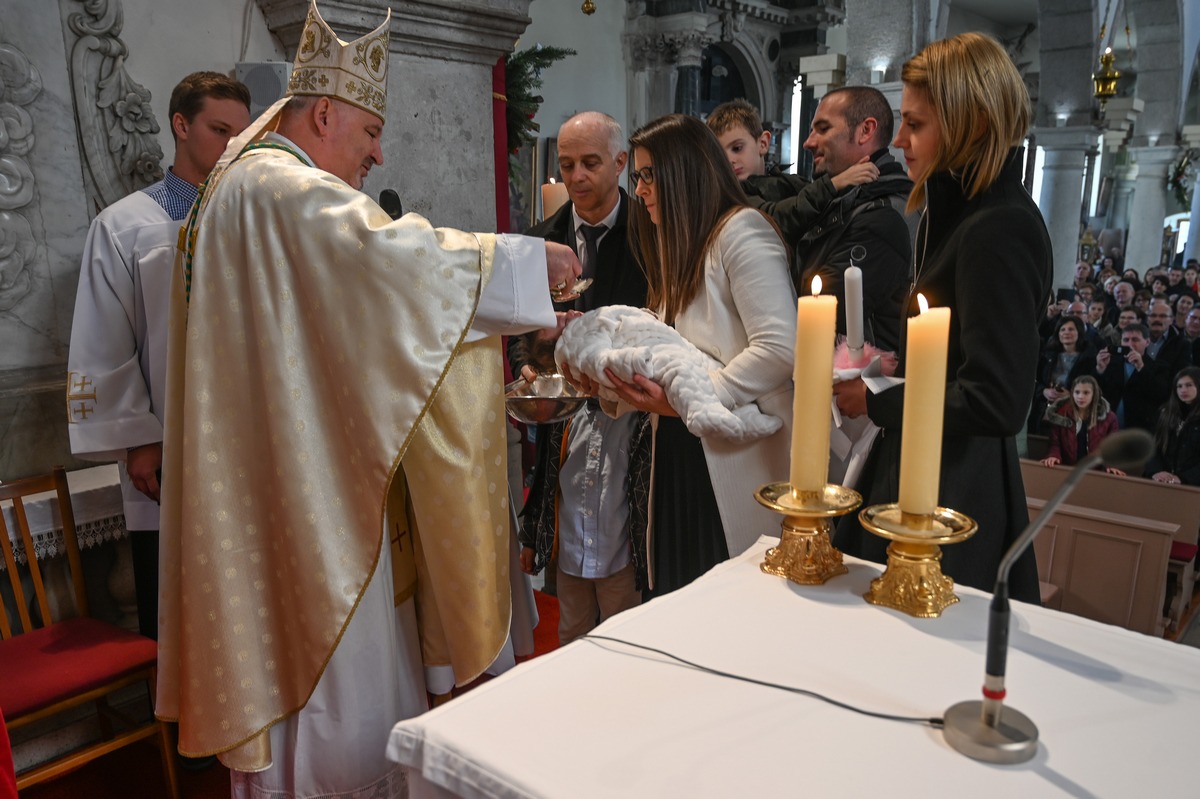 Krčki biskup Ivica Petanjak krstio je u nedjelju 5. siječnja u župnoj crkvi Rođenja Blažene Djevice Marije u Malom Lošinju Katarinu-Ritu, sedmo dijete u obitelji Ružice i Ilije Mikić, te Luku, sedmo dijete u obitelji Antona i Danice Matić.