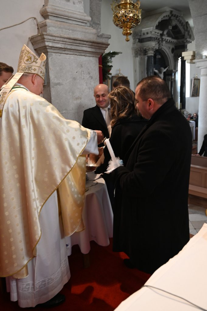 Čestitku obiteljima poslali su i predstavnici gradskih vlasti, gradonačelnica Ana Kučić sa suradnicima, a pročitao ju je župnik Zubović: „Poštovane obitelji Matić i Mikić! Veliku radost, koju dijelimo sa Vama,  osjećamo  u ovo blagdansko vrijeme kada vaši krštenici primaju krst i oblače se u Krista. Neka krštenje vaše djece bude samo početak njihova života okupanog Božjim blagoslovom i neka ih taj blagoslov koji danas primaju vodi kroz život i štiti od svakog iskušenja i nevolje“.