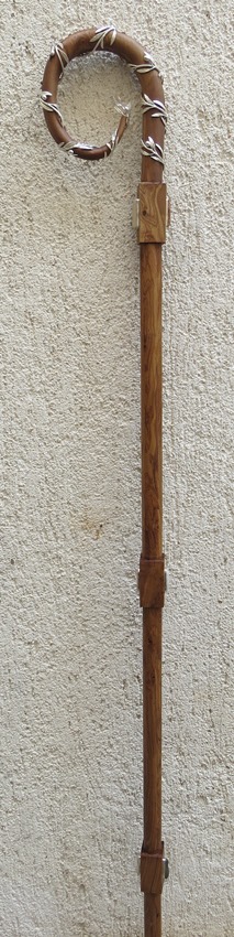 Biskupski štap ovalnog je oblika a presijecaju ga tri pravokutna izbočenja poput tri zgloba ili čvora. Svakom biskupu osloniti se na Jednog Boga u Trojstvu osoba služeći i se trostrukim darom naučavanja, posvećivanja i upravljanja da bi svoje stado poput Dobrog Pastira dovelo božanskim krepostima – nadi, vjeri i ljubavi od kojih je potonja najveća i trajna. Našem novom biskupu Ivici, tri čvora mogu biti i znak triju redovničkih zavjeta u nasljedovanju Učitelja…