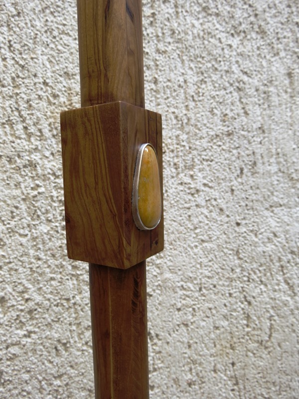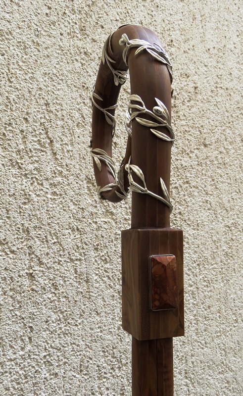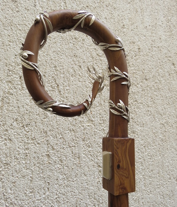 Maslina, između svoje višestruke znakovitosti, iako bi nas možda mogla dovesti sve do u vrt u kojem se odvijala smrtna borba Bogočovjeka dok njegovi spavaju a „sin propasti“ ga poljupcem izdaje, u kontekstu biskupske službe, prije nas vodi svom plodu – ulju koje je znak duhovnog pomazanja: „Duh Gospodnji na meni je, on me posla blagovjesnikom biti siromasima…“. Grana masline, što se jednim dijelom priljubljena splela oko vrha štapa, znak je Duha što u redu službi Crkvu zbrinjava svakovrsnim darom. Onaj dio, vrška grane masline, oslobođen u prostor, znak je da Duh puše gdje hoće i da Bog svoga Duha ne daje na mjeru…