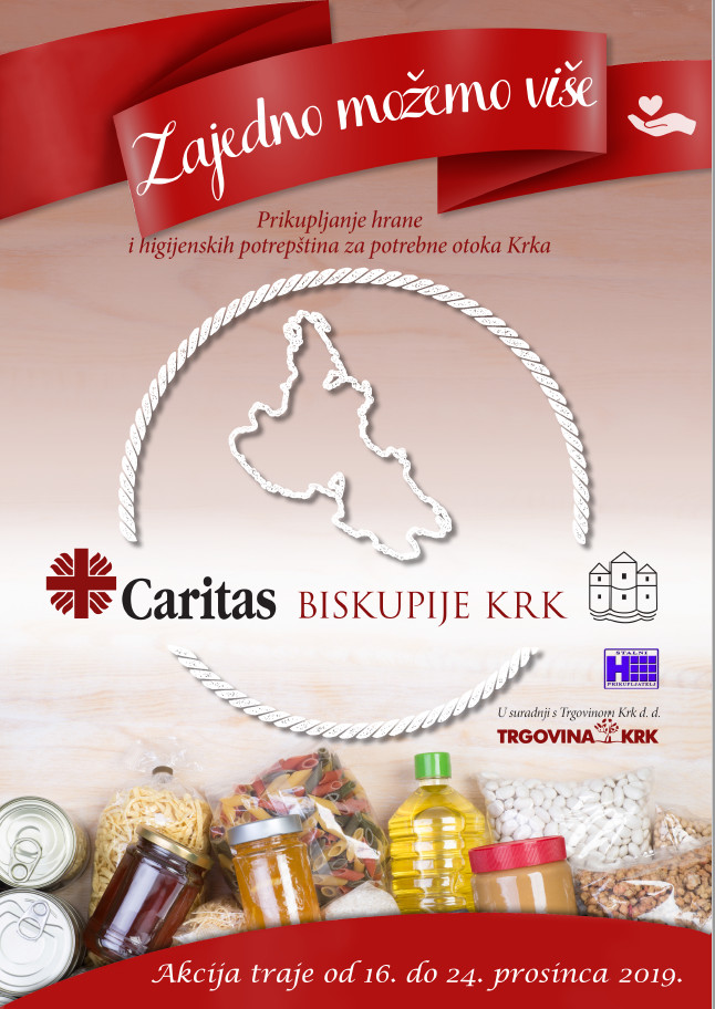 Ovo je akcija koju organizira Caritas Biskupije Krk u suradnji s Trgovinom Krk d.d., s ciljem prikupljanja hrane i higijenskih potrepština za one koji su u potrebi s područja otoka Krka.