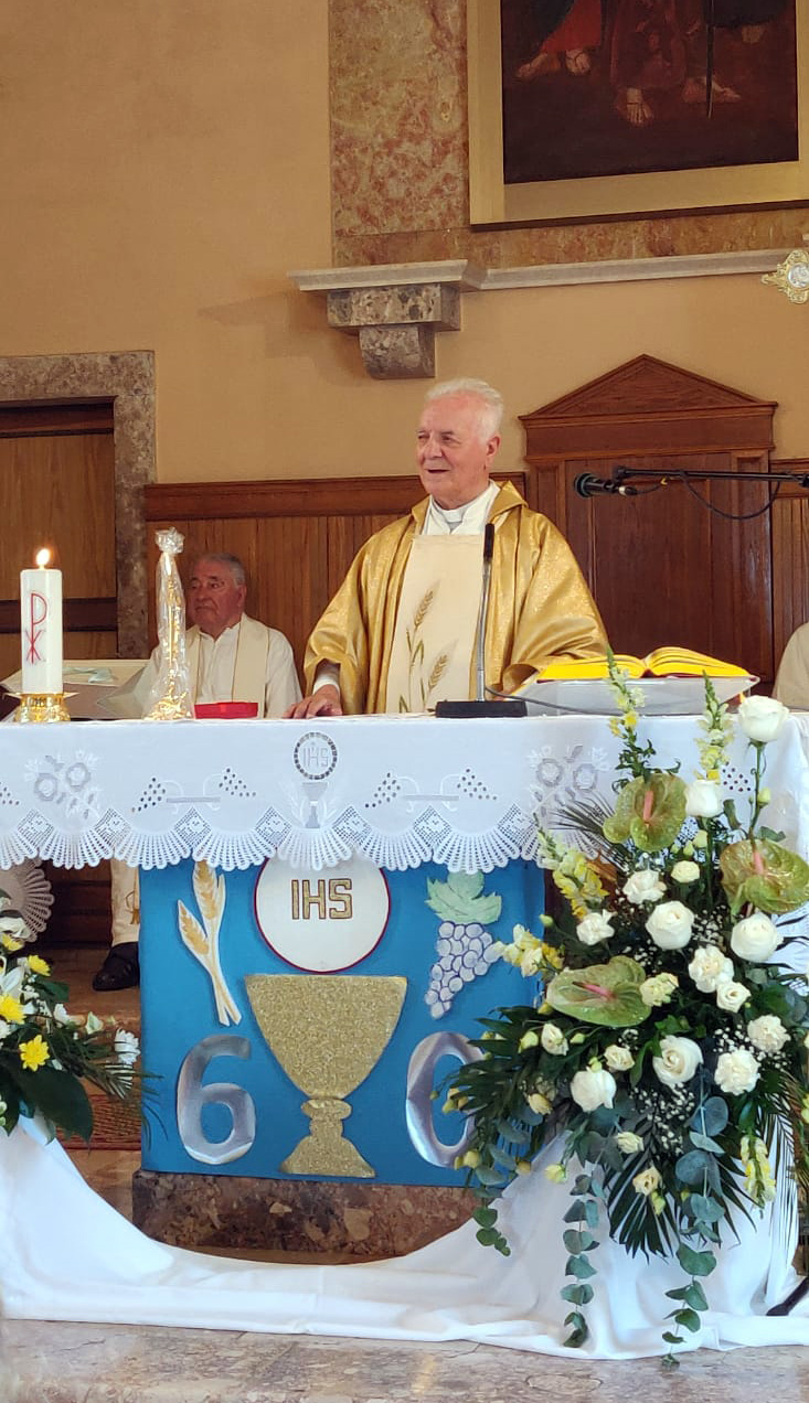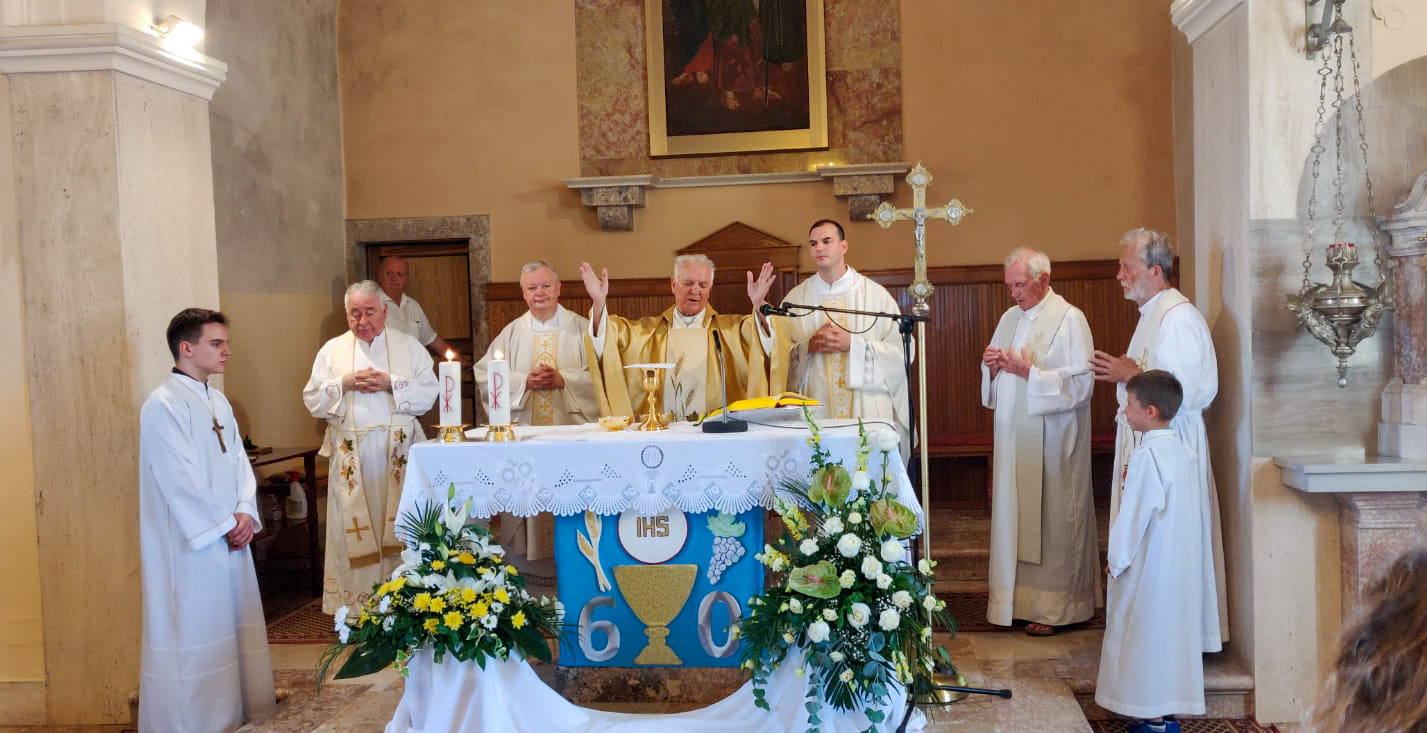 Euharistijsko slavlje predvodio je dijamantni misnik vlč. Anton Zec. Uz zvukove sopila, jubilarac je ispraćen iz župne kuće u procesiji prema župnoj crkvi sv. Fuske gdje je slavljena dijamantna sv. misa.