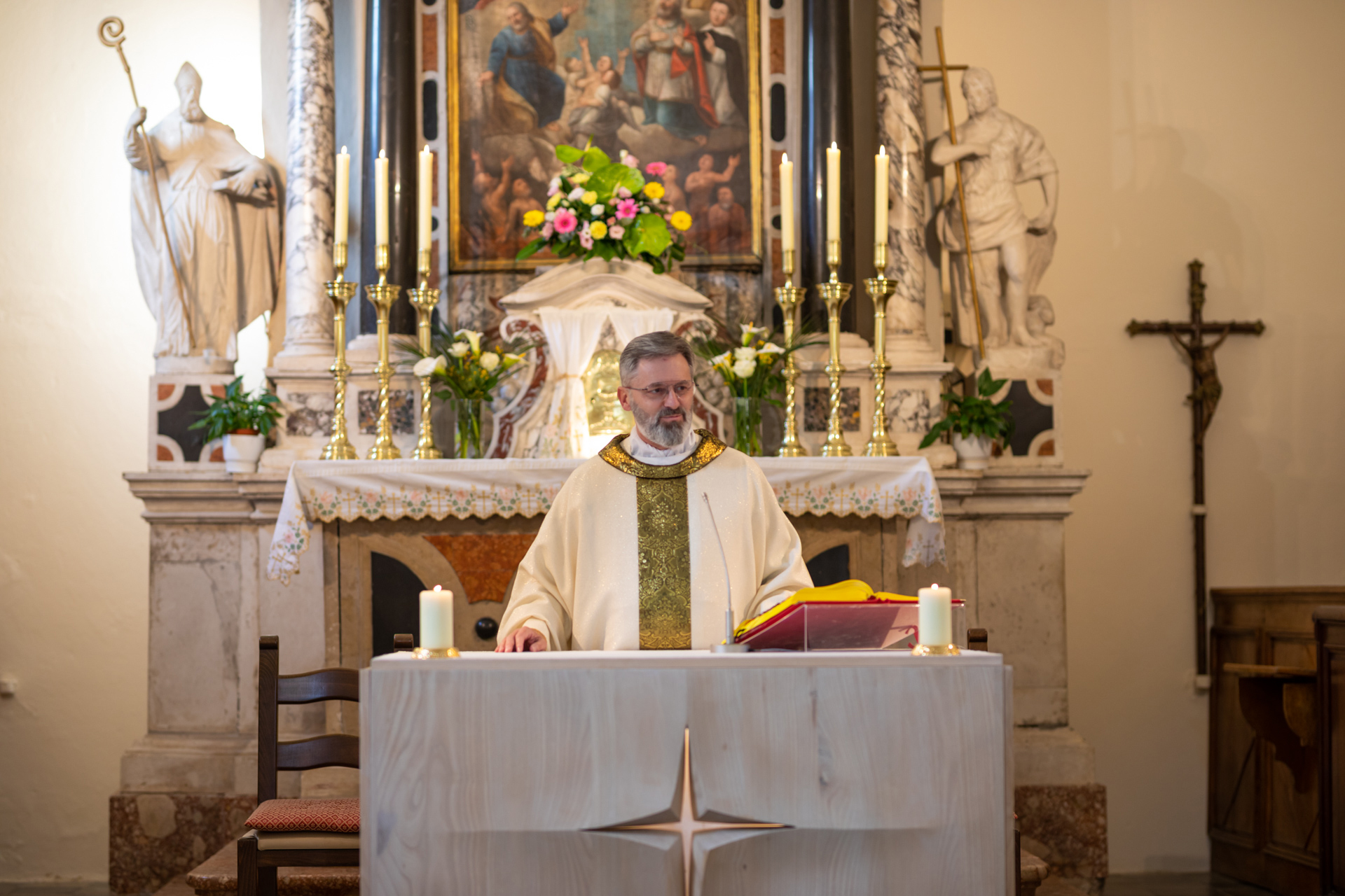 U misi koju je predvodio župnik Drage Bašćanske vlč. Zvonimir Seršić nizale su se hrvatske uskrsne pjesme ispletene dobrinjskim liturgijskim napjevima, od „Dobrinjske maše“ preko „Aleluje“ do „Budi hvaljeno“. Crkva je nastavila i kroz koncert odzvanjati prigodnim skladbama Velikog petka, Uskrsa te afričkim uskrsnim himnom.