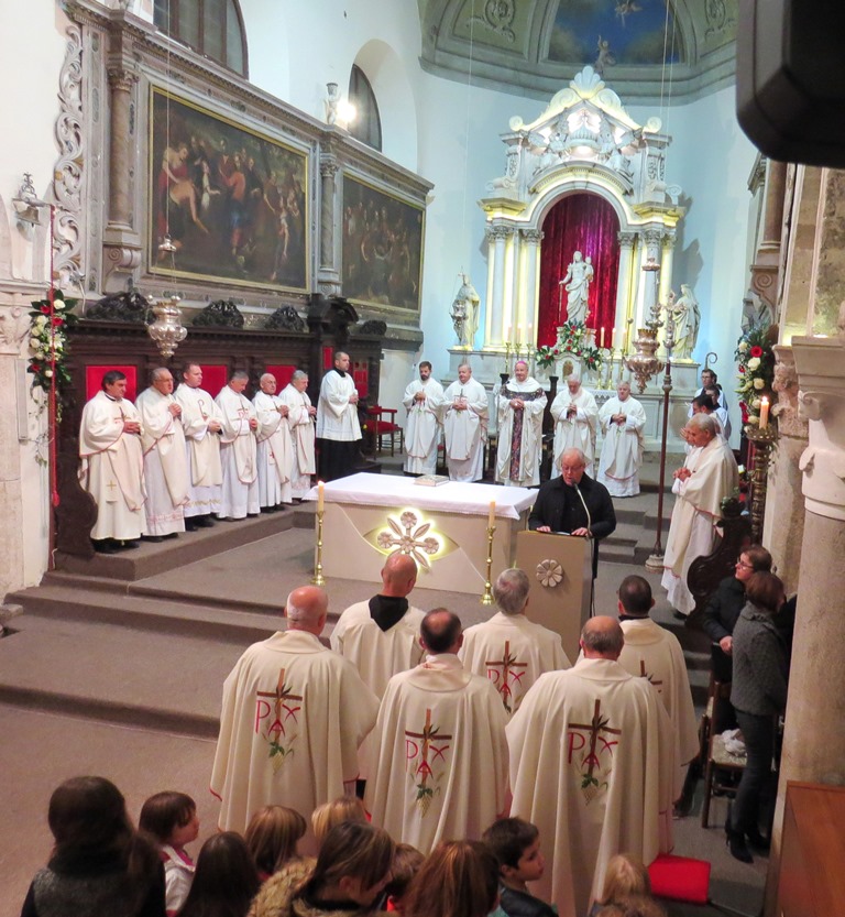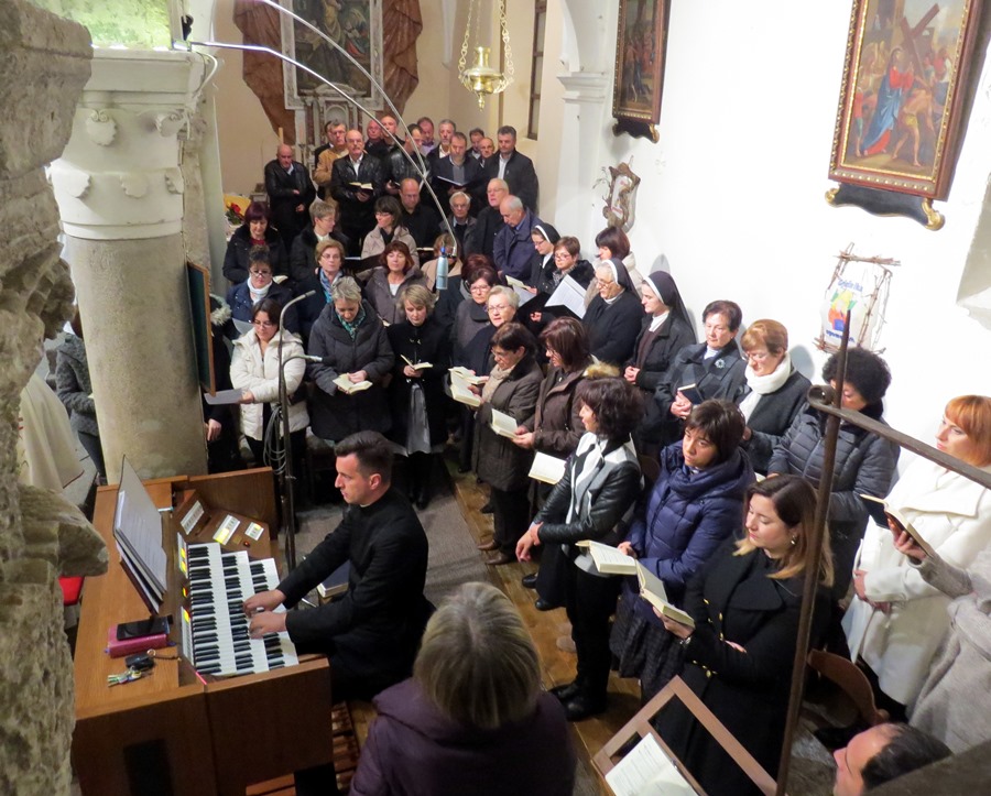 Skladna liturgija, razdraganost dječjih i odraslih lica, od ulazne procesije do završne molitvene zahvale na svim primljenim darovima, pokazala je da ni burna, studena večer ne može spriječiti visoko motivirane vjernike u dolasku na misno slavlje u koje se unosi srce i duša. Božju su riječ čitali, prvo čitanje gđa Marinka Kirinčić Pahlić iz Krka, psalam je otpjevao fra Diego Deklić košljunski gvardijan, a drugo čitanje gosp. Mladen Maržić iz Vrbnika. Evanđelje je vrlo upečatljivo navijestio pjevanjem vlč. Ivica Katunar, župnik u Baški, dok je molitva vjernika pjevao gosp. Ivan Antončić iz Omišlja. Pjevali su udruženi zborovi župe Krk i Vrh te redovnice iz Omišlja i Punta, dok su sopili sopci Gabrijel i Ivan Mrakovčić iz Vrha.