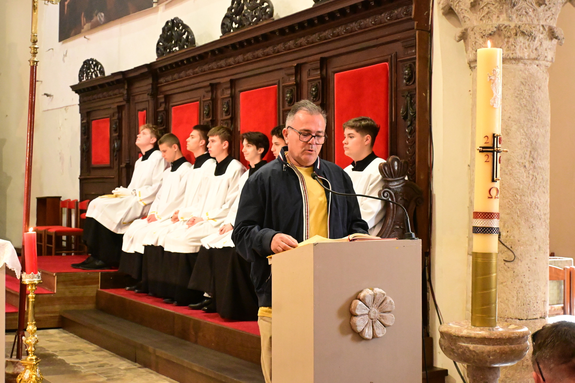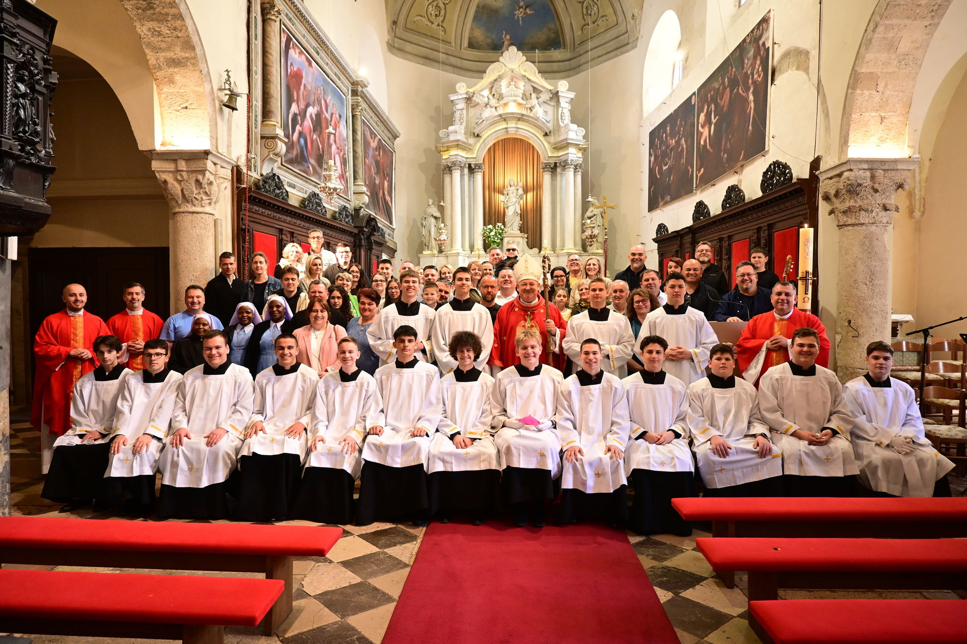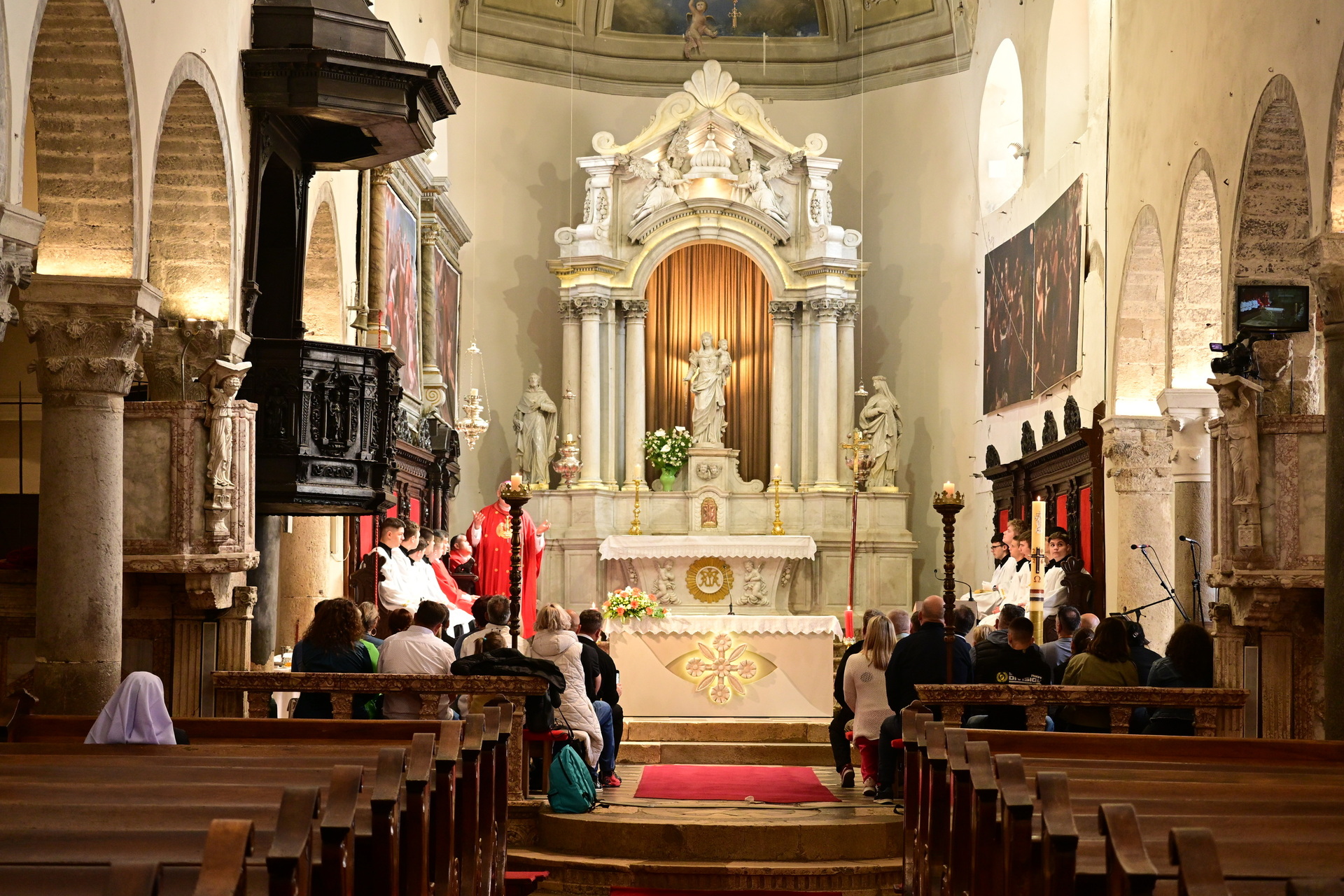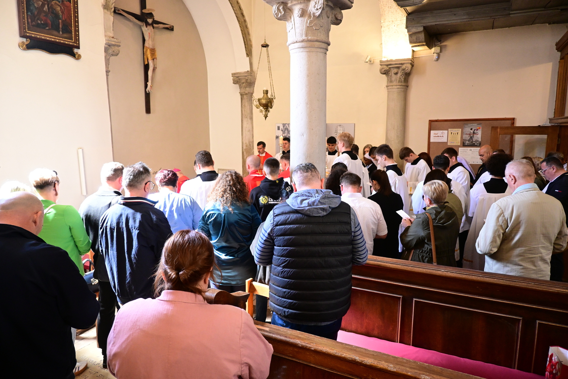 Nakon hodočašća u Istru, Šibenik, Vrpolje, Krasno i Senj te Aljmaš i Osijek, ovo, peto po redu, zajedničko hodočašće sjemeništaraca i njihovih obitelji započelo je u ranim jutarnjim satima, a prva postaja na otoku Krku bila je krčka katedrala Uznesenja Blažene Djevice Marije, ‘crkva majka’ svih crkava Krčke biskupije, gdje je hodočasnike iz Zagreba, uz srdačnu dobrodošlicu, dočekao krčki biskup mons. Ivica Petanjak sa suradnicima.