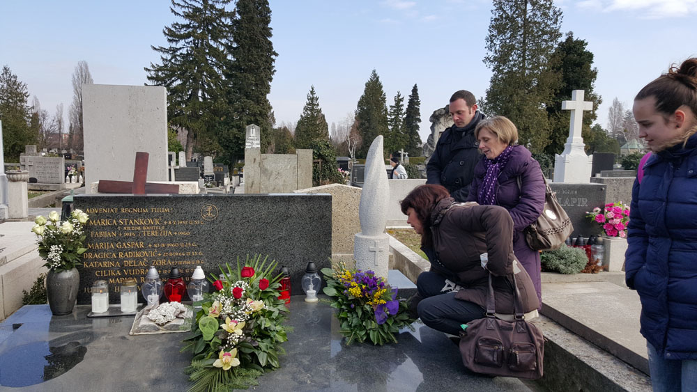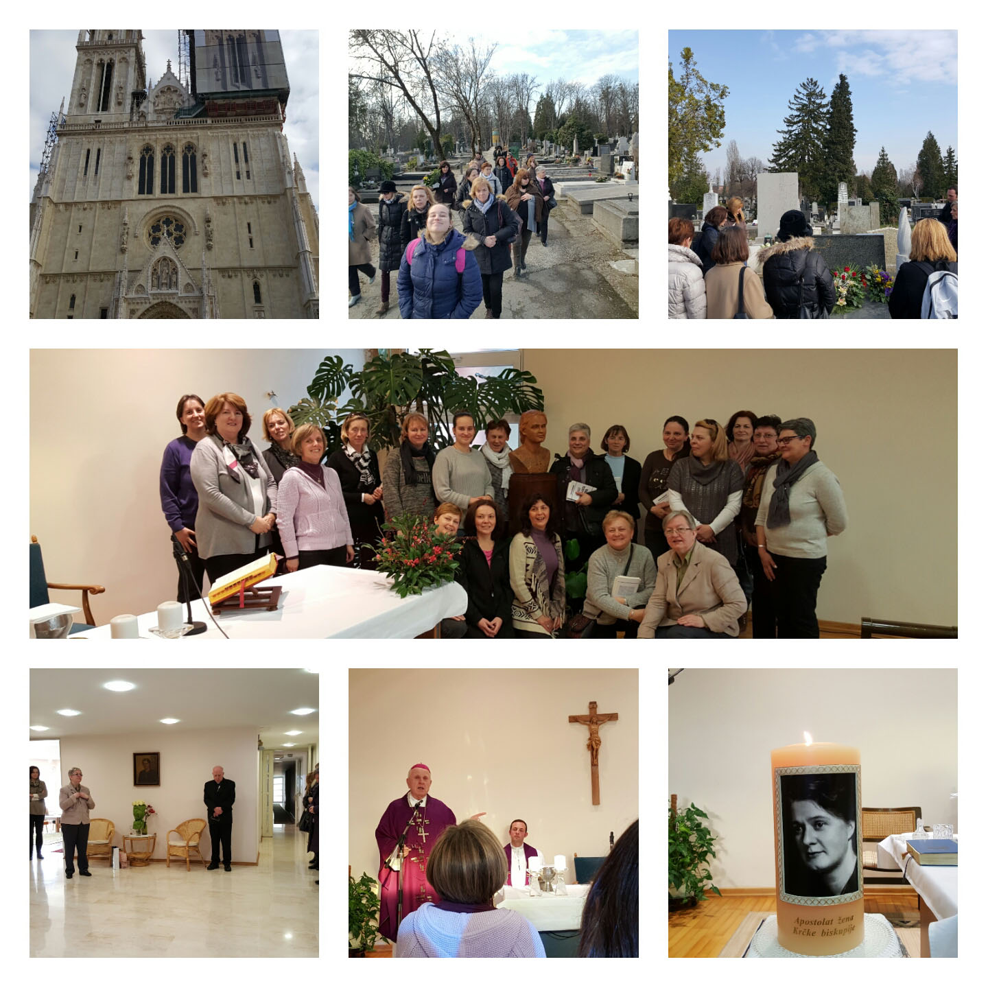 Po dolasku u Zagreb posjetili smo Katedralu, te se pomolili na grobu bl. Alojzija Stepinca, osobito za naše biskupe i svećenike. Poslije kraćeg slobodnog vremena, uputili smo se na Mirogoj, te molitvom, uz cvijeće i svijeću, pohodili grob službenice Božje. Trenutak je bio dojmljiv, zbog svega što je ova iznimna žena u našem narodu propatila radi katoličkog odgojnog angažmana oko mladih. Molili smo usrdno njezin zagovor da bi žene u našoj Biskupiji shvatile prevažnu ulogu odgoja u vjeri.