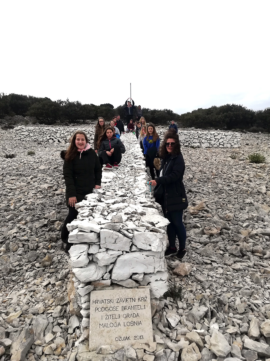 U subotu, 19. siječnja u poslijepodnevnim su se satima pješice uputili na obližnje brdo Goli gdje su branitelji u Domovinskom ratu s otoka Lošinja postavili zavjetni križ od suhozida povodom ulaska Hrvatske u Europsku uniju.
