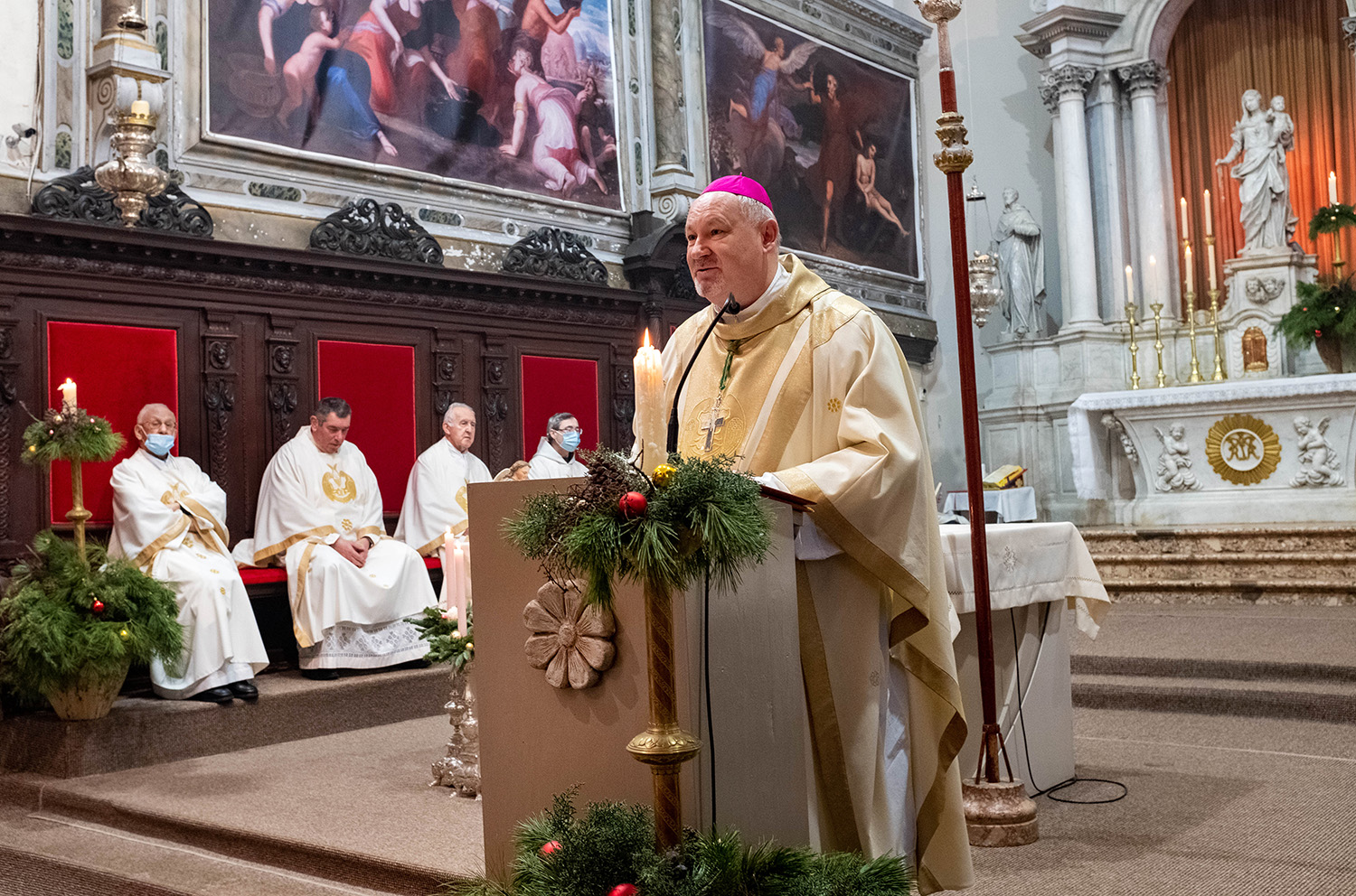 Na svetkovinu Bogojavljenja, mons. Ivica Petanjak OFMCap predvodio je svečano misno slavlje u koncelebraciji osmorice krčkih svećenika i redovnika. Evanđelje je navijestio krčki župnik vlč. Anton Valković, a biskupov tajnik vlč. Josip Karabaić navijestio je svetkovanje Vazma i tijek ove liturgijske godine.