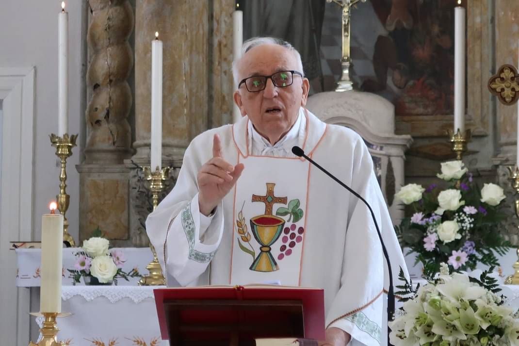 Na početku mise slavljenika je pozdravio župljanin Jakov Kurtović, a prigodnu homiliju je održao mons. Velčić. U svojoj homiliji mons. Velčić je istaknuo važnost molitve za život Crkve ali i za nova duhovna zvanja. Prisjetio se još jednog svećenika iz naših, krajeva, iz susjedne župe Vrana o. Mika Mužića, isusovca, koji je skoro čitav svoj život bio misionar u Brazilu a znao je reći Da per tutto a casa – Posvuda doma. Propovjednik je na kraju citirao slavljenika: „Na Filipine me odvela poslušnost prema mojim poglavarima.