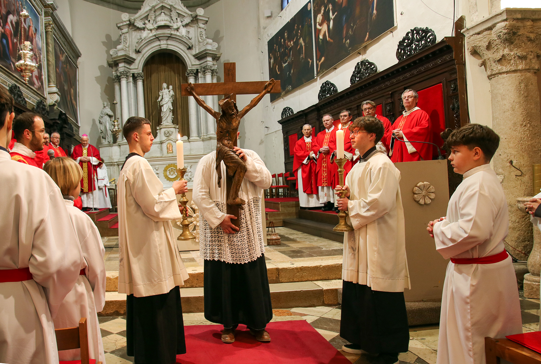 Na Veliki petak, 3. travnja, krčki biskup mons. Ivica Petanjak predvodio je u Krčkoj katedrali Obrede muke i smrti Gospodinove.