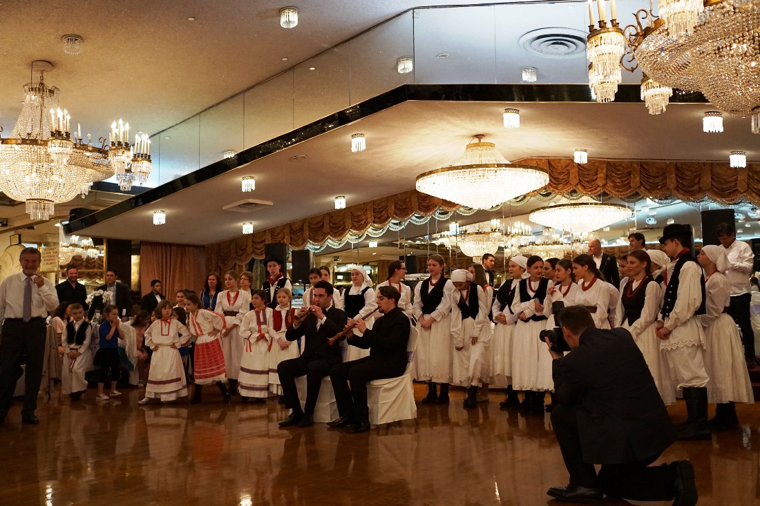 Slavlje je nastavljeno u dvorani Astoria World Manor na kojem su prisustvovali i ostali svećenici župe Most Precious Blood, časne sestre iz Župe Sv. Ćirila i Metoda te generalna konzulica Republike Hrvatske u New Yorku, Spomenka Cek. Više od tri stotine uzvanika sa zanimanjem je pratilo prigodni program kojim se obilježilo i naglasilo hrvatsko nasljeđe kroz ples folklornih skupina „Hrvatska Ruža“ i „Ružica“, Kluba Otoka Krka te pjesmama i recitacijama. Prisutne je zabavljao popularni Tabako i grupa Aquarius iz Hrvatske te su sa velikim uspjehom sve prisutne satima držali na nogama.