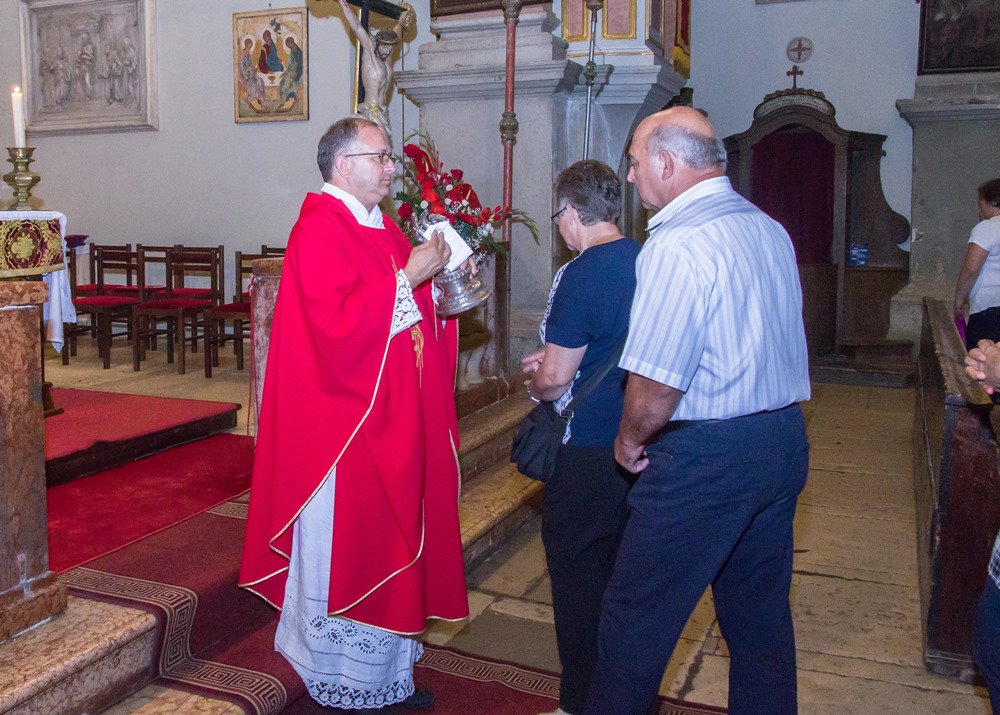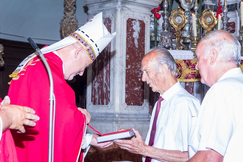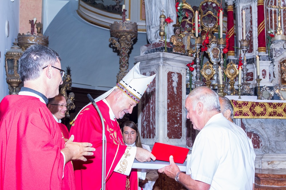 Na kraju misnog slavlja, župnik se zahvalio dvojici velološinjana za dugogodišnje predano služenje župi: Korinu Stupariću, koji već 55 godina vrši službu orguljaša, te Antoniju Lettichu za tridesetu godišnjicu službe sakristana, ali i pomaganje župi već više od 7 desetljeća. Otac biskup dvojici je župljana uručio plakete u znak zahvalnosti.