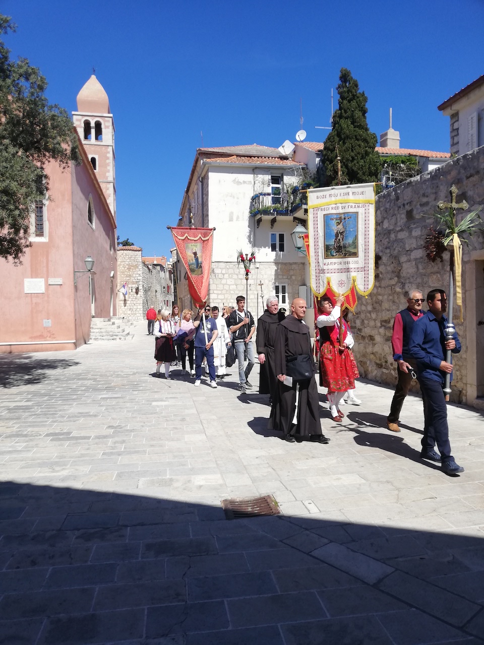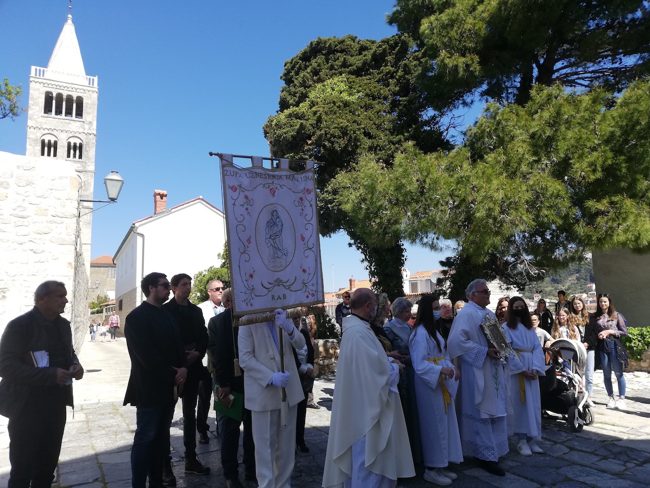 Sunčanog 25. travnja, noseći sliku Rapske Gospe, kako bi svojim majčinskim pogledom blagoslovila otočane Raba, župljani župe Uznesenja blažene Djevice Marije, zajedno sa župnikom Mladenom Mrakovčićem, spustili su se rapskim „Bobotinama“, čekajući procesije otočana okolnih mjesta, čime je svečanost proslave rapskih „Križi“, zavjetnog blagdana starog već dugih 500 godina, započela. Vjernici iz svih župa otoka, skupili su se na glavnom rapskom trgu „Varošu“, obilježavajući još jednu tradicijsku proslavu blagdana „Križi“, pod posebnim pandemijskim okolnostima, ali i s posebnom ljubavlju koju su donijeli u svojim srcima, sa nakanom da se pomole blaženoj rapskoj Gospi i prikažu sebe i svoje bližnje u molitvama.