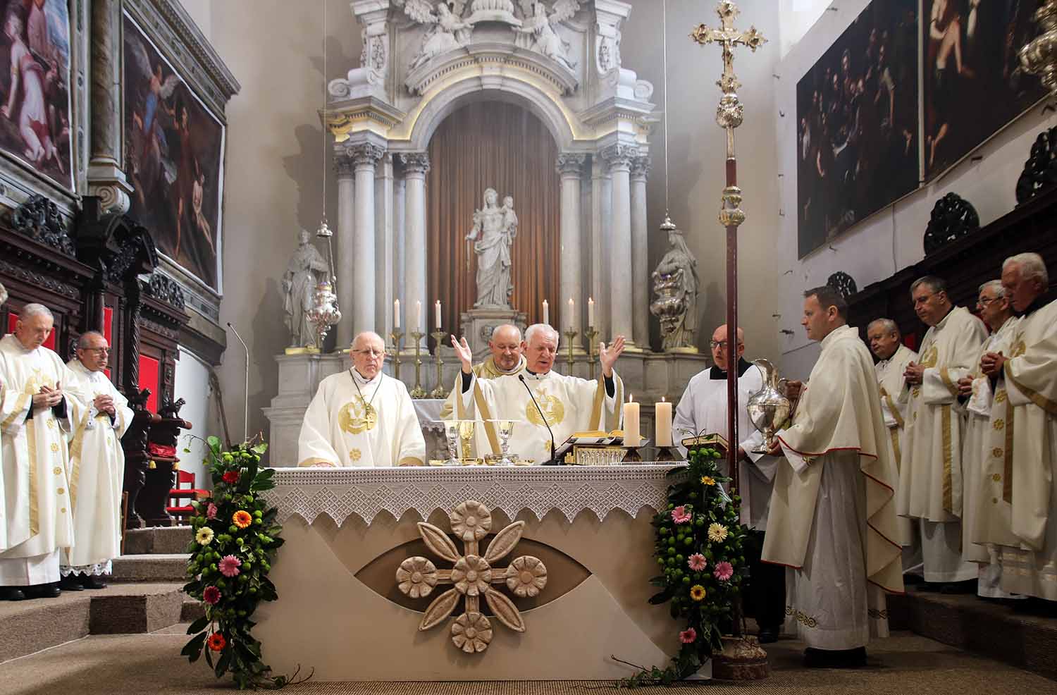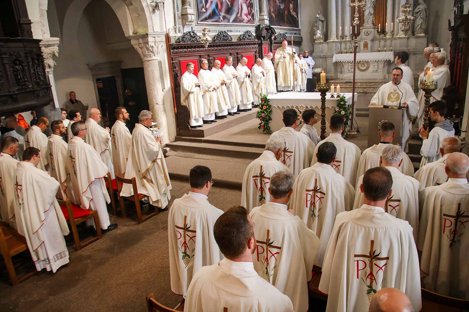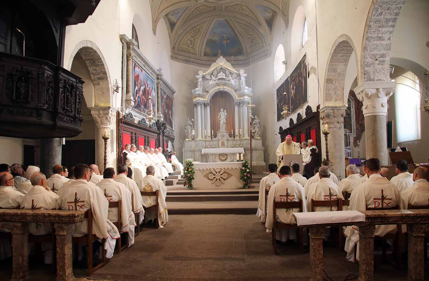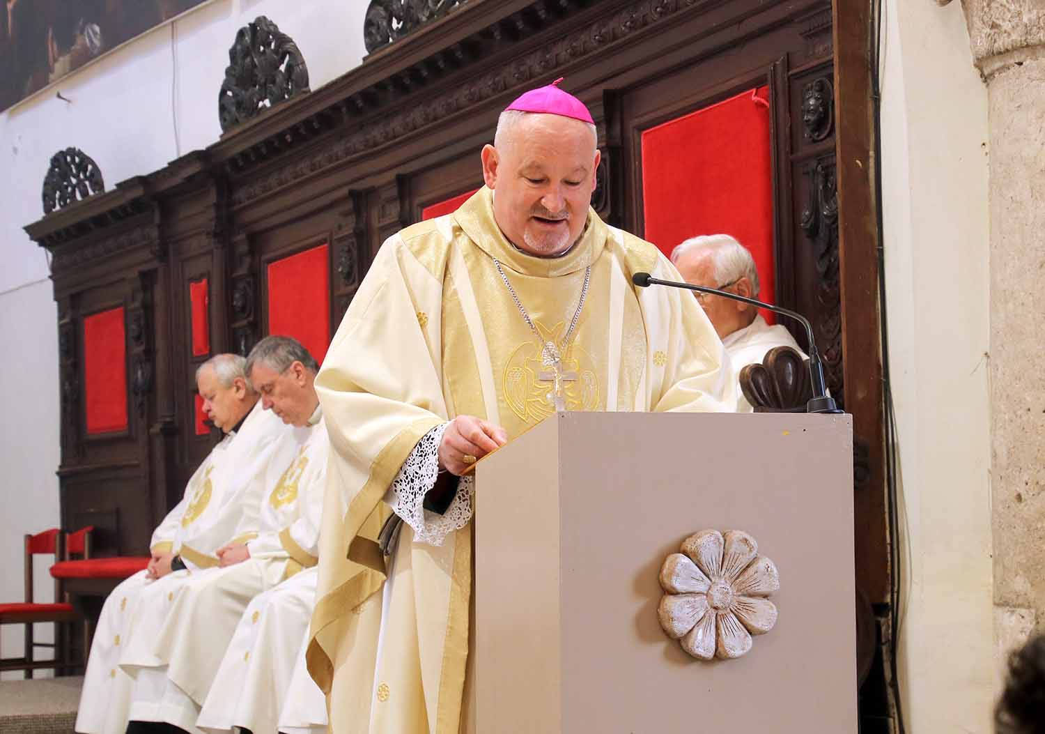 U ovoj prigodi, čestitao je svim svećenicima njihov dan, a posebne čestitke uputio je ovogodišnjim jubilarcima: biskupu u miru mons. Valteru Županu srebrni biskupski jubilej, vlč. Antunu Zecu 60 godina svećeništva (dijamantni jubilej), vlč. Franu Broziću, preč. Ivanu Jurasiću i vlč. Dinku Justiniću 50 godina svećeništva (zlatni jubilej), a vlč. Zvonimiru Badurini Dudiću i vlč. Zlatku Sudcu 25. godina svećeništva. Pozdrave je uputio i svim svećenicima koji trpe zbog starosti i bolesti te nisu u mogućnosti sudjelovati u euharistijskom zajedništvu.