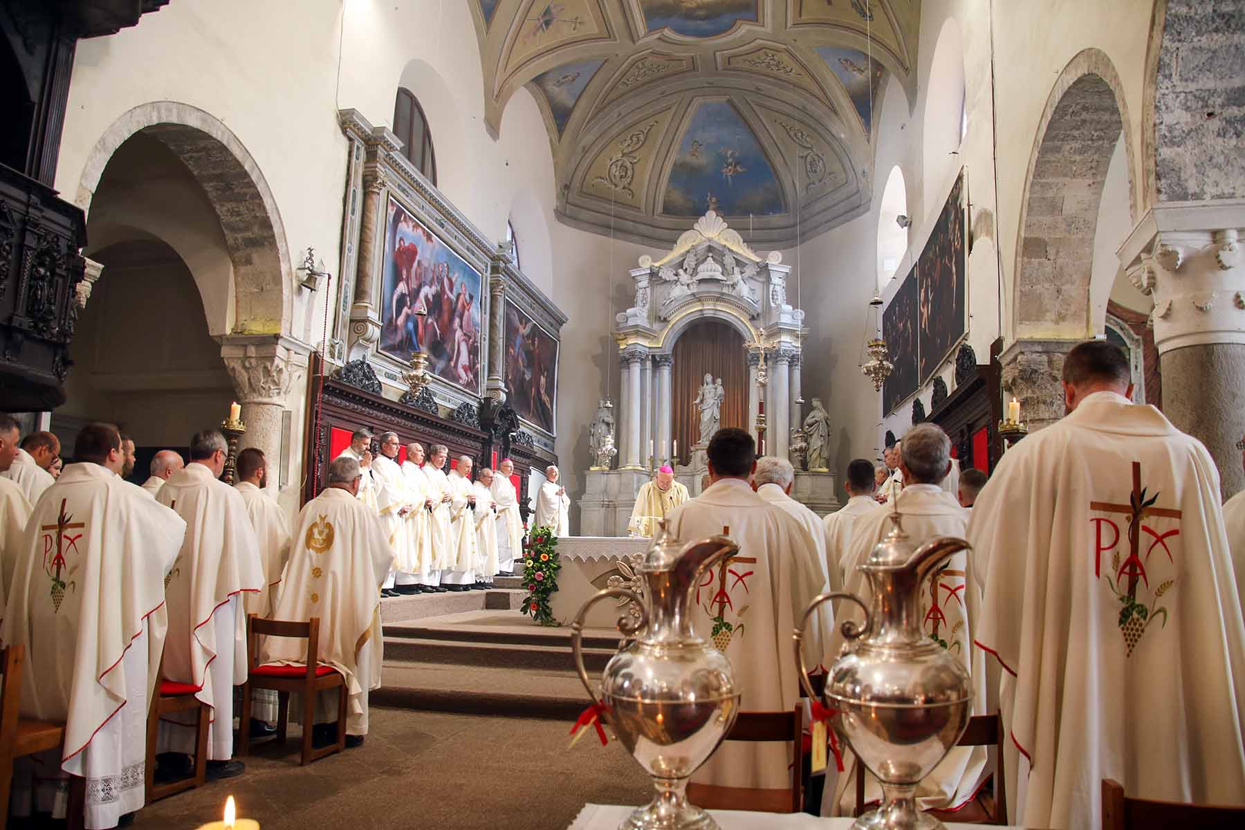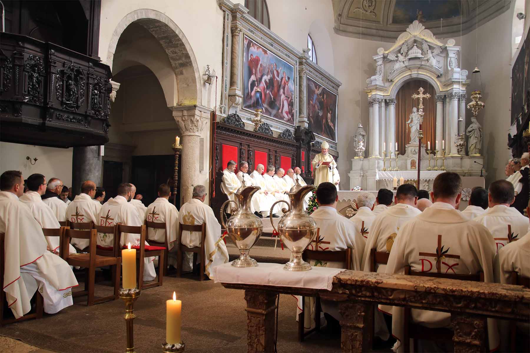 Misu posvete ulja predvodio je na Veliki četvrtak, 6. travnja o.g., krčki biskup mons. Ivica Petanjak, uz koncelebraciju biskupa u miru mons. Valtera Župana te četrdesetak svećenika i redovnika.