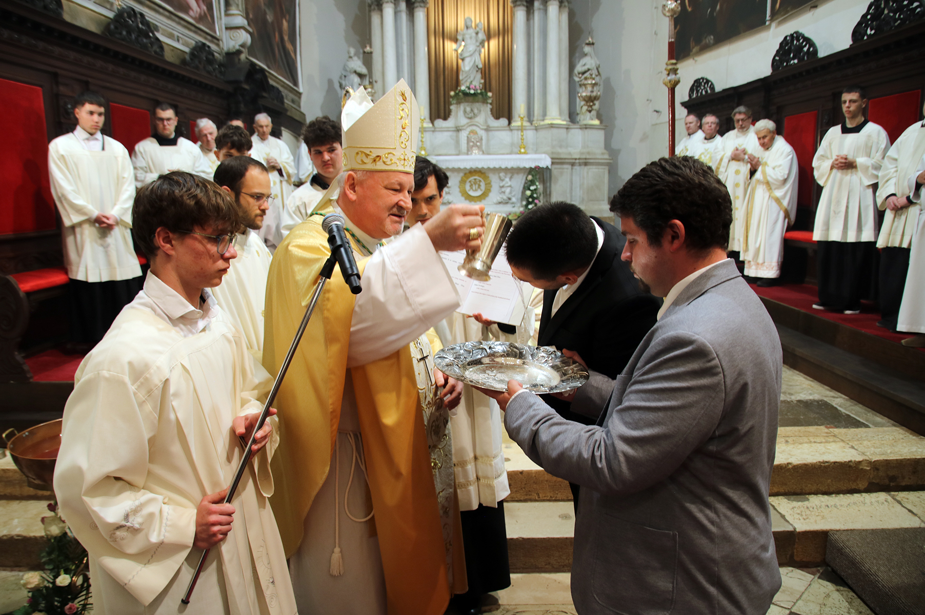 Biskup Petanjak uranjanjem uskrsne svijeće u zdenac i molitvom blagoslovio je vodu, a zatim je katekumenu podijelio sakramente kršćanske inicijacije.