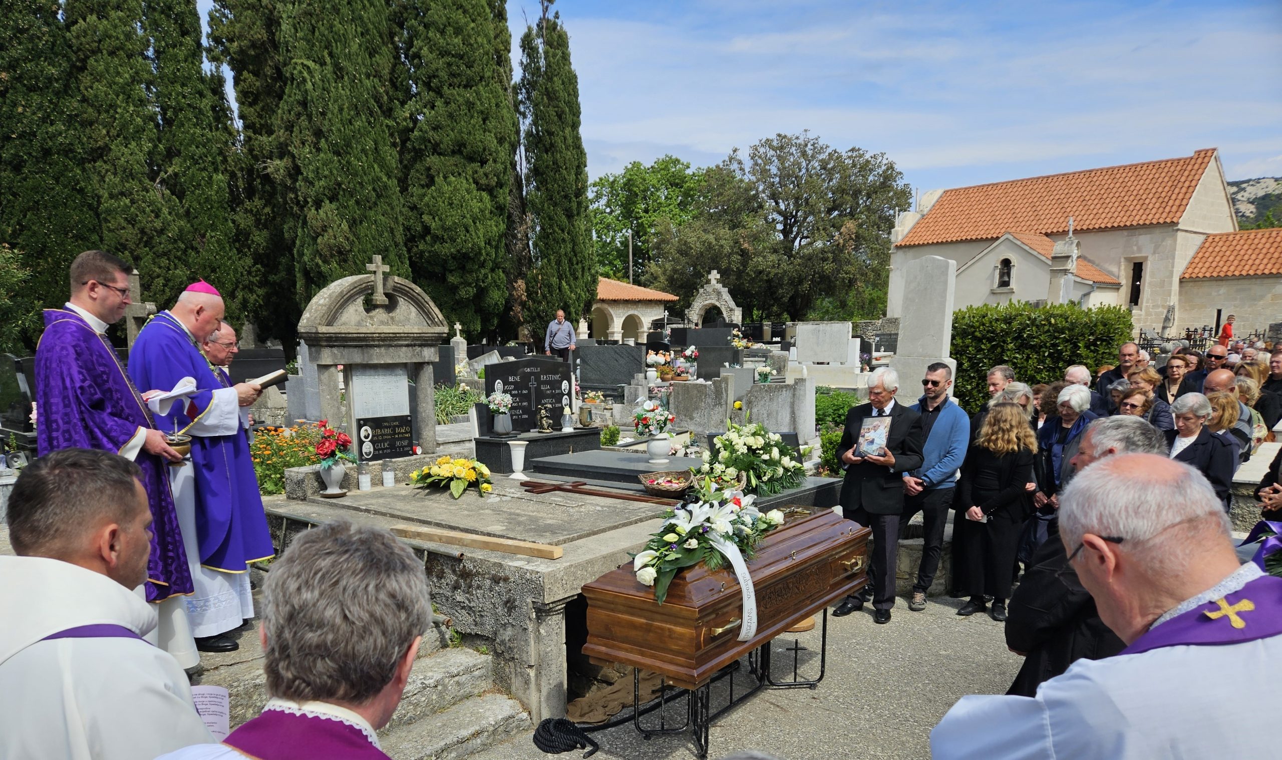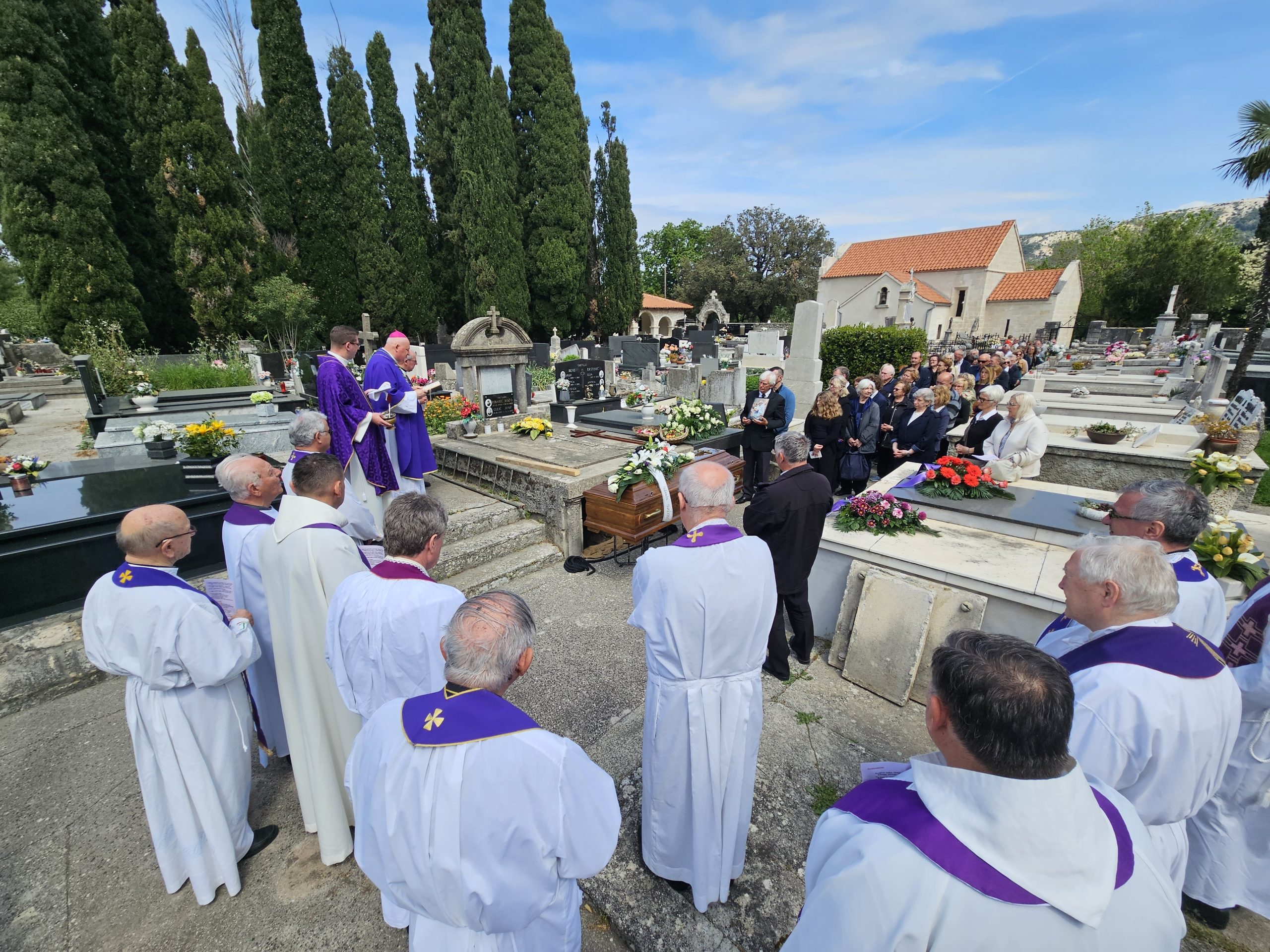 Uslijedili su zatim sprovodni obredi koje je isto prevodio biskup Ivica Petanjak. Lijes s pokojnikom je iz crkve sv. Frane, u pratnji svećenika, sproveden do svećeničke grobnice na gradskom groblju u Rabu gdje je položen.
