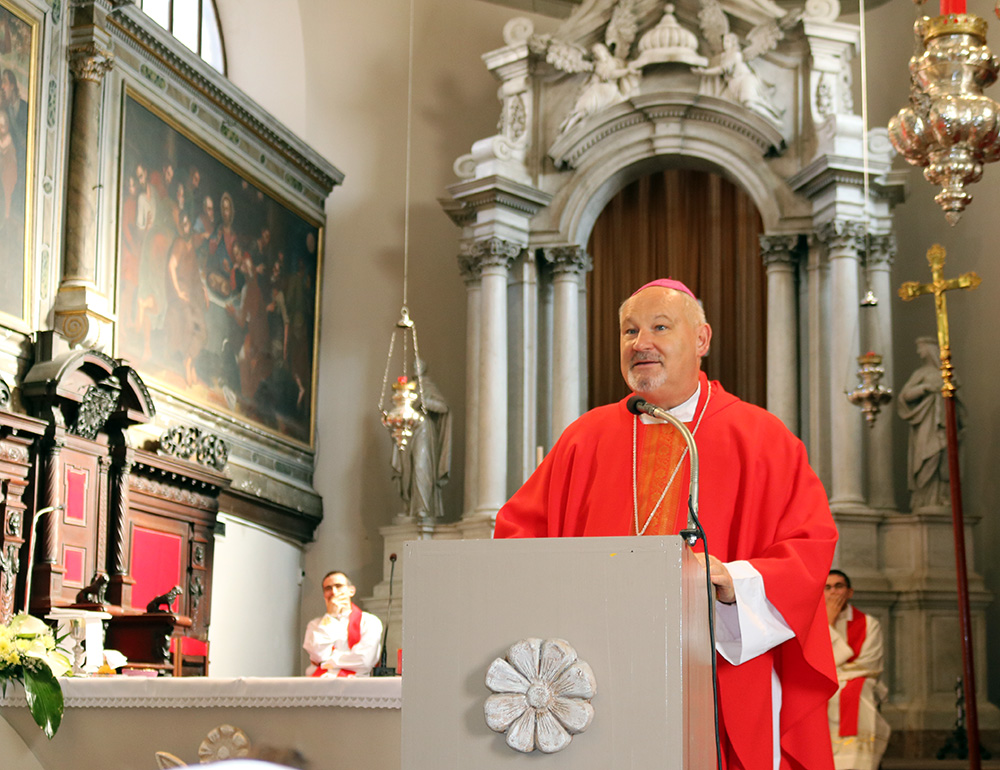 U prvom djelu susreta prisutni su zajedno sa krčkim biskupom Ivicom Petanjkom proslavili svetu misu na čast svetoga Mateja, apostola i evanđeliste. Biskup Ivica pozvao je na dublje promišljanje problematike navještaja Riječi Božje vjeroučenicima te se osvrnuo na pitanja koja se javljaju u srcima svih zauzetih navjestitelja te Riječi: Kako potaknuti djecu i mlade na živi susret sa živim Bogom? Što nas u tome priječi i kako nadvladati poteškoće na putu prihvaćanja dubljeg molitvenog, sakramentalnog i liturgijskog života? Matejev poziv više nam govori o milosrdnom Isusu nego o grješnom Mateju koji je prihvaćen takav kakav jest i to je temelj početka njegova istinskog obraćenja. Tim putem nam je ići i prema onima koji nam dolaze iz raznih životnih situacija. Prihvatiti ih, pokazati im da ih Bog voli i dopustiti im da dožive ljubav jer takva se iskustva, osobito doživljena u djetinjstvu, pamte i utječu na sve kasnije izbore, stavove i odluke.
